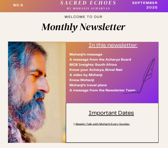 An Acharya serves as a bridge between the teachings of Mohanji and the world, inspiring transformation through authentic living and conscious awareness.